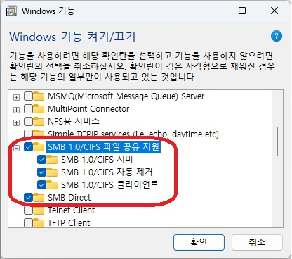 [SMB 기능 설정 확인하기 - 윈도우11기준]