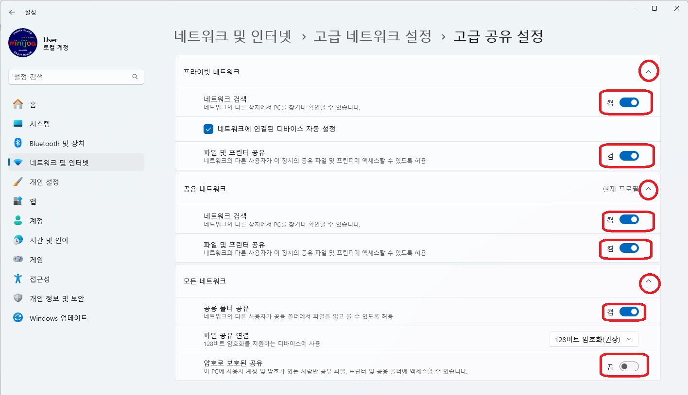 [고급 공유 설정 확인하기 - 윈도우11기준]