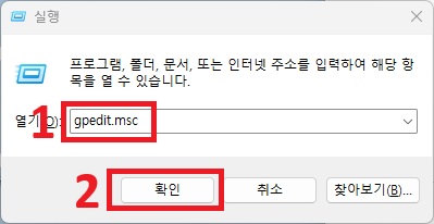 2. gpedit.msc 입력후 확인