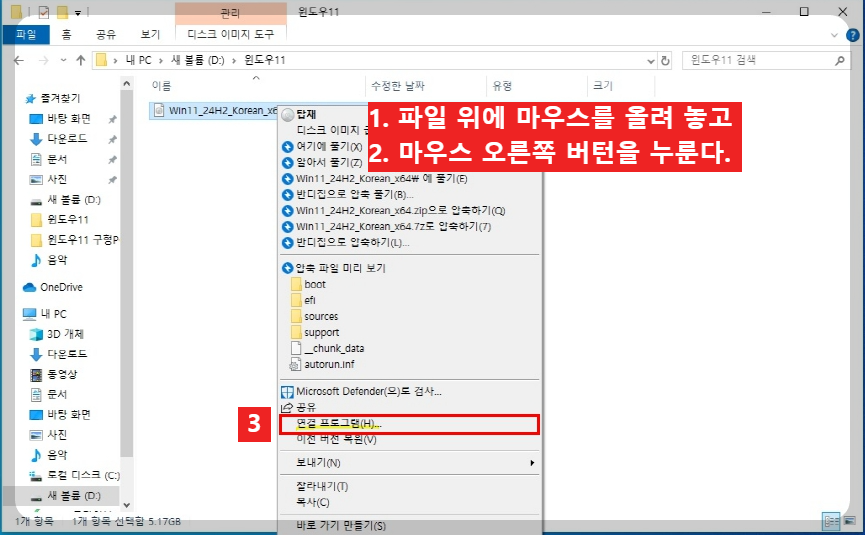 2. 다운로드한 파일을 아래 그림과 같이 순서대로 진행하여 연결 프로그램을 클릭한다.